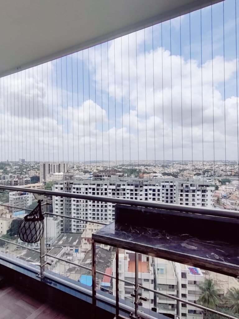 The netting is installed in a way that keeps your balcony open and visually clean without creating a closed or cluttered look.